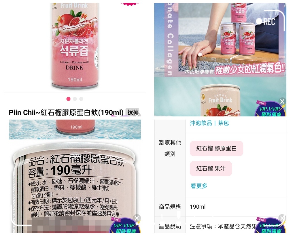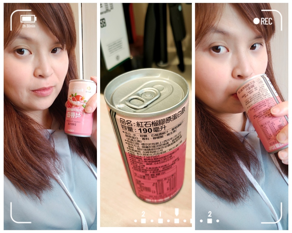 我忘記我在哪看到有這紅石榴膠原蛋白飲就一直對它很有興趣,剛好在小三美日有看到當然要入手的啊!!我還買了兩罐呢!!