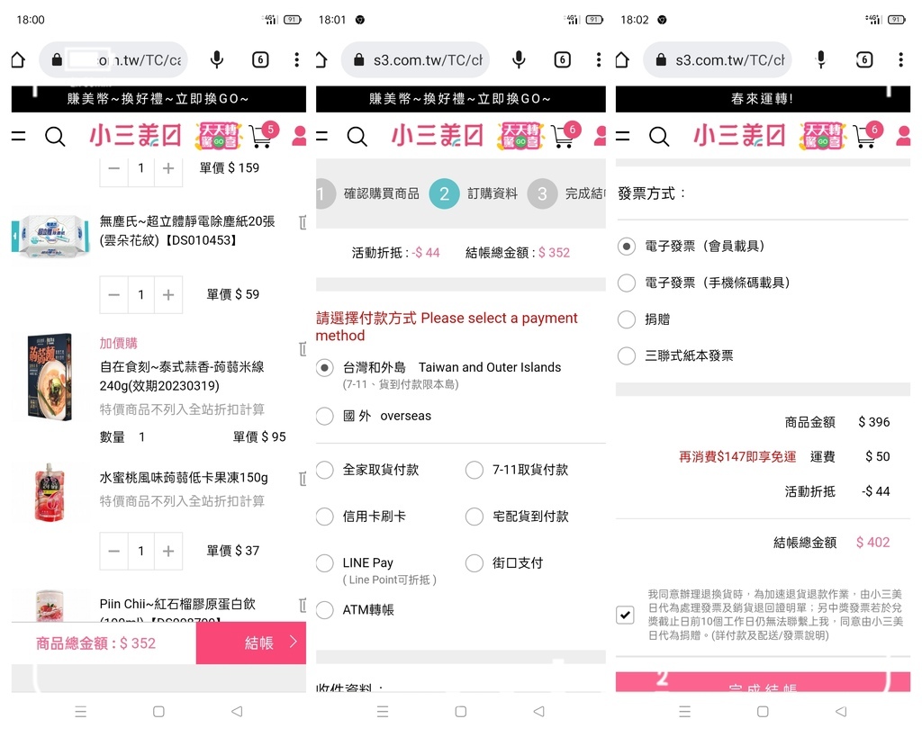 我在購買的時候發現小三美日還另外多送我生日禮金耶!!所以最後我有再多買了一些東西,結果不小心買超過我要買的金額了XD~~~